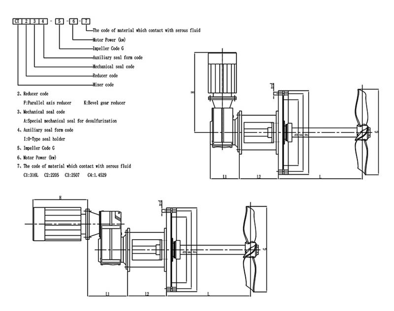 Notas: O material de todas as peças dos misturadores pode ser feito sob medida de acordo com as condições de trabalho locais, meio de mistura e necessidade do cliente.